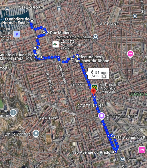 Lors de cette balade nous verrons, l'Opéra, l'église Saint Charles, le Palais de Justice, la fontaine Estrangin, la Préfecture, la place Castellane...